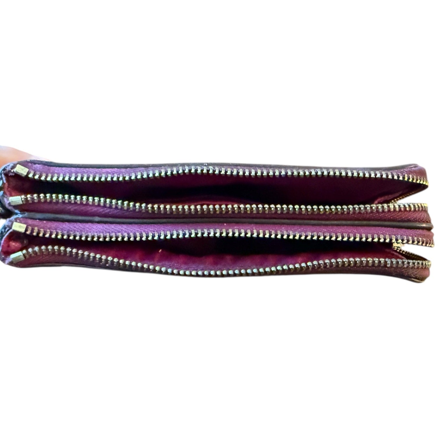 Coach Double Zip Brown & Fuchsia Wristlet Wallet