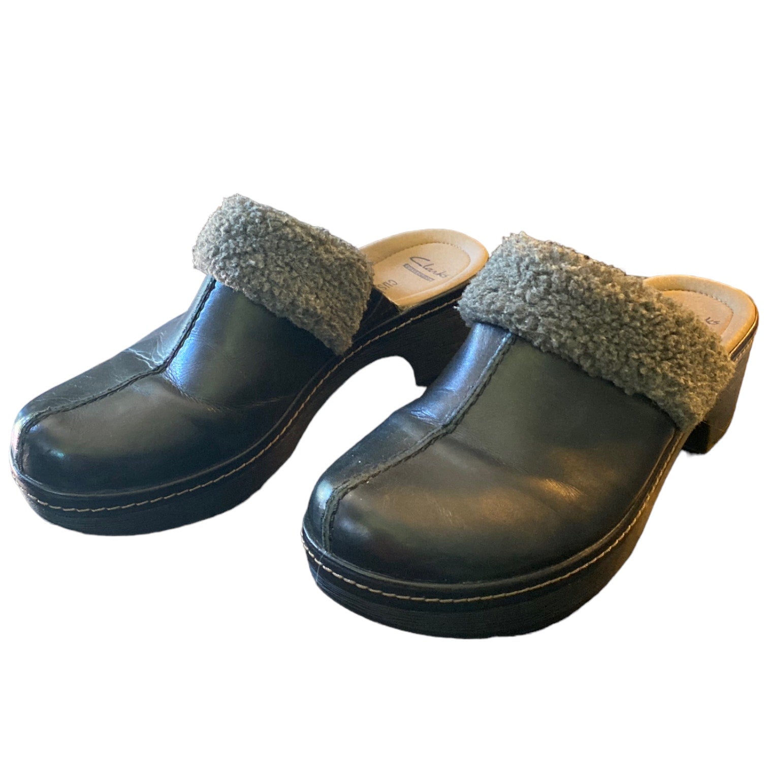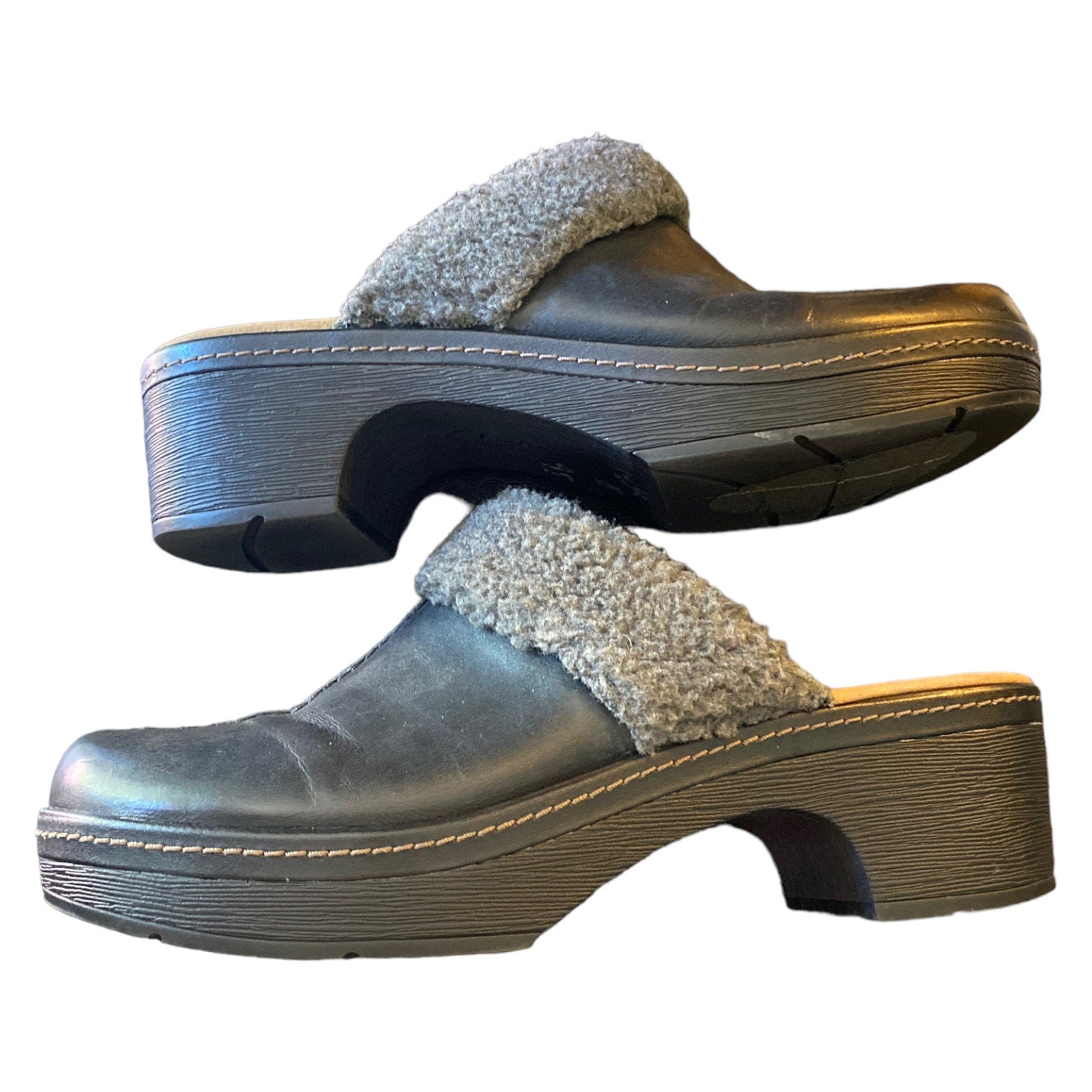 Clarks Collection Black Soft Cushion Slip On Sherpa Trim Mule Size 9.5