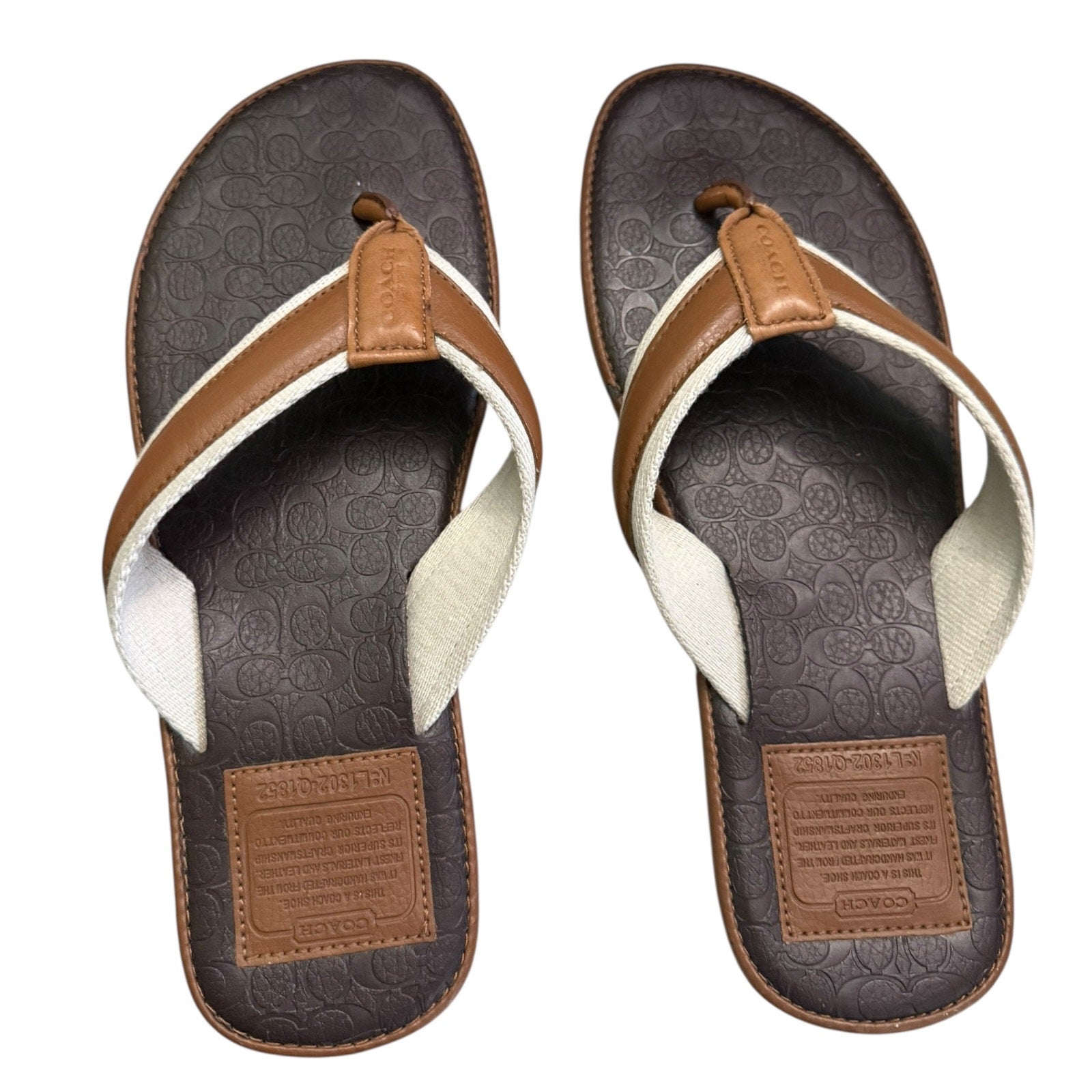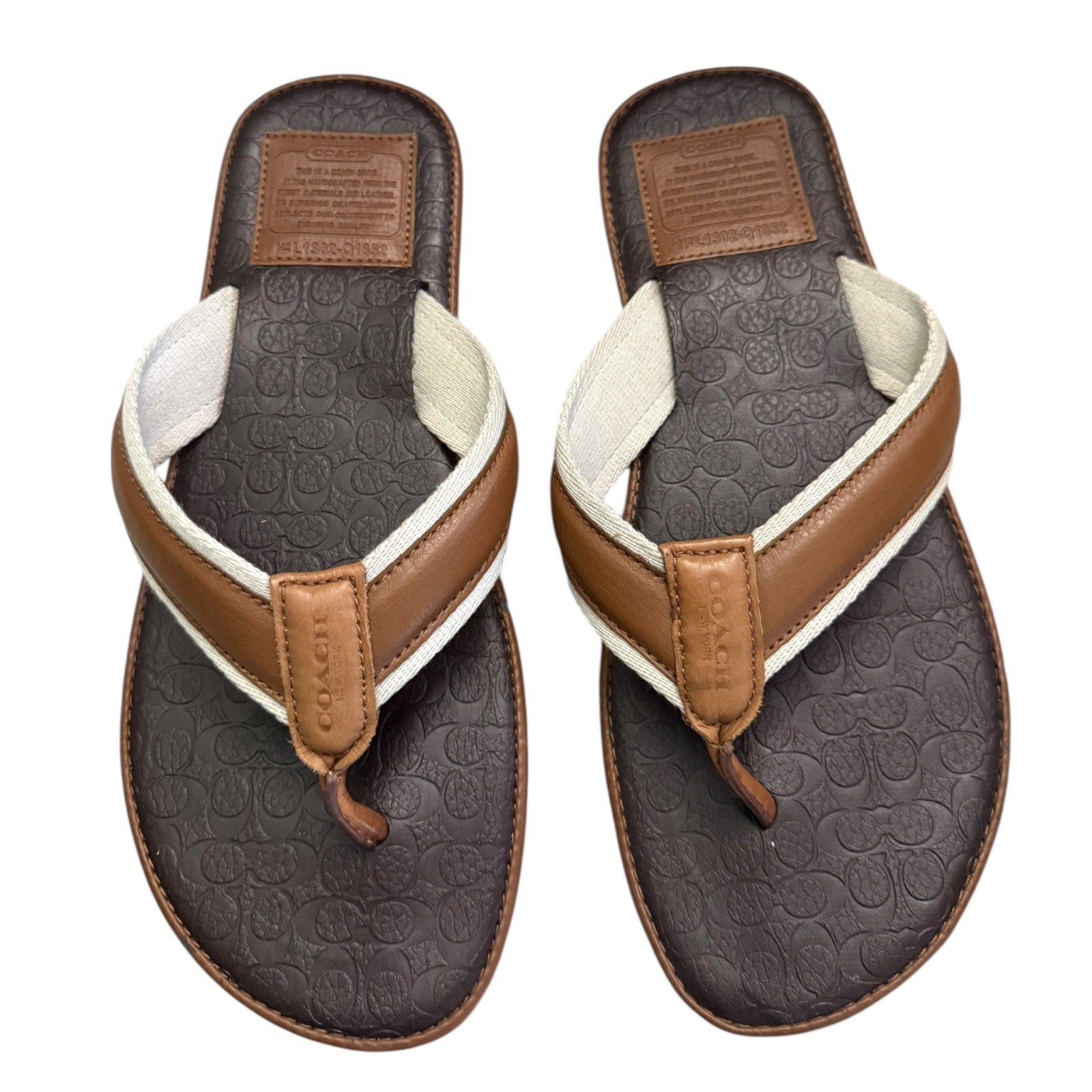 Coach Men's Flip Flip Sandals Signature CC Shoes L1302-01852 Size 10