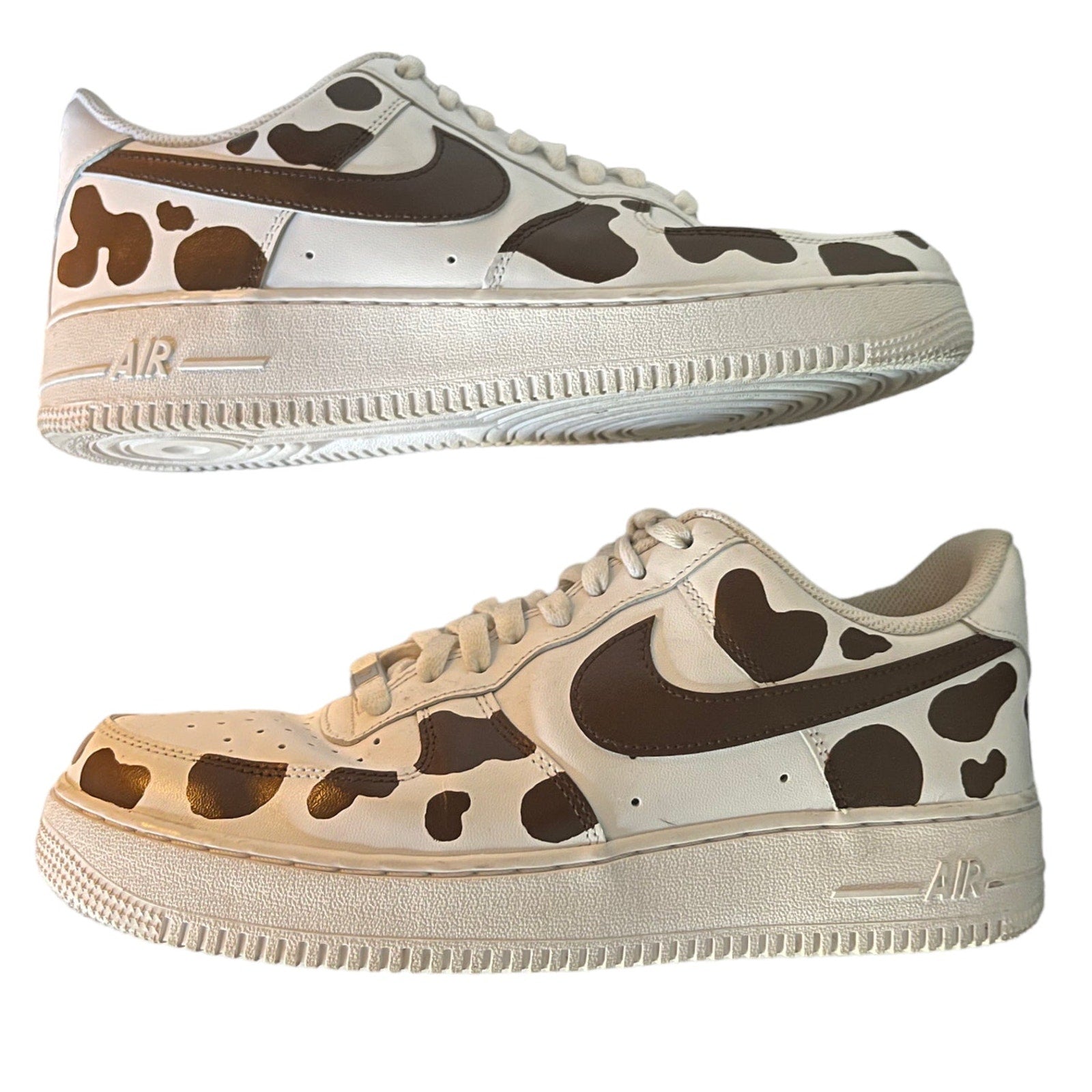 Nike Air Force 1 White Animal Print Custom Paint Sneakers Size 10 CW2288-111
