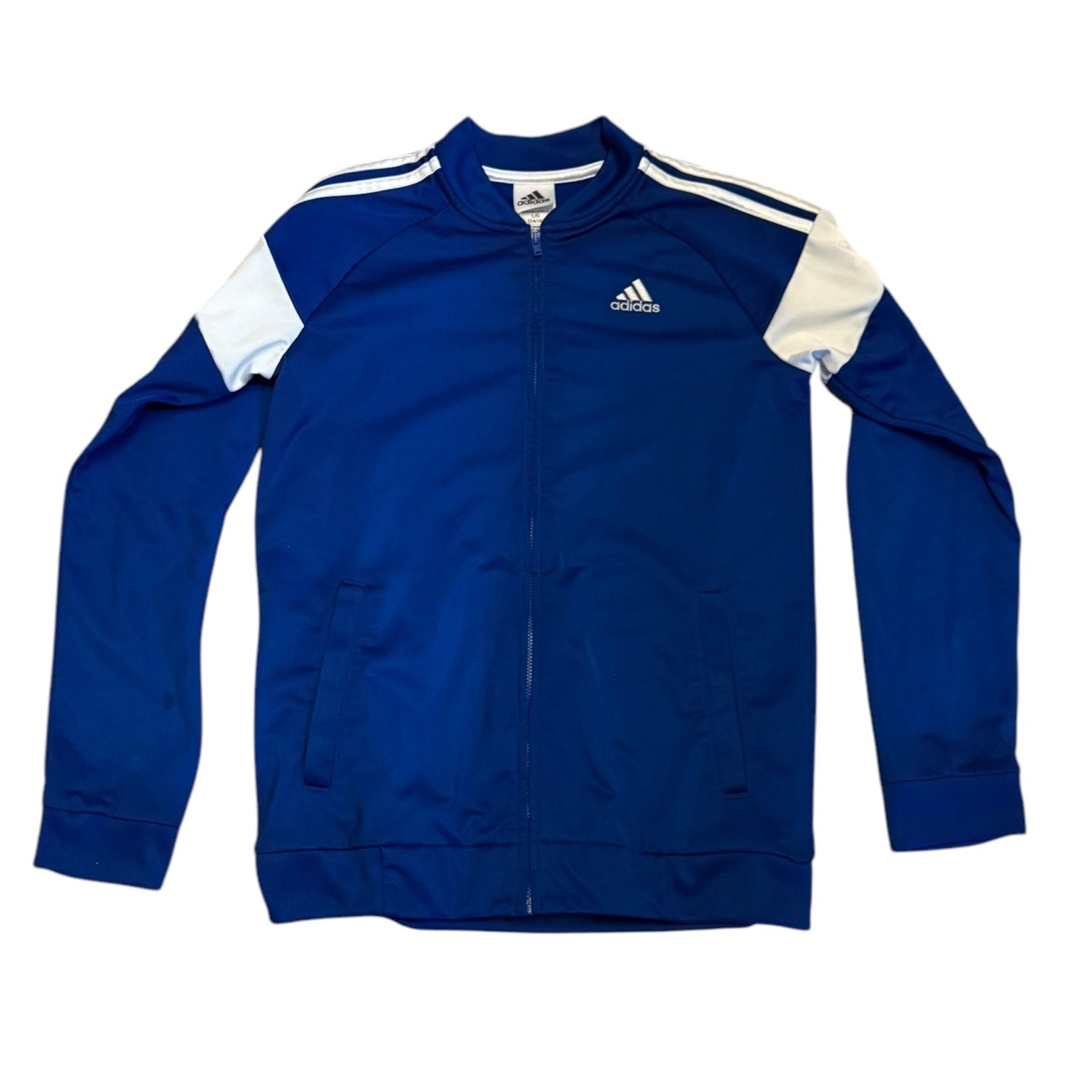 Adidas Boys Blue Zip Front Track Jacket Size Large 14/16 AP5436