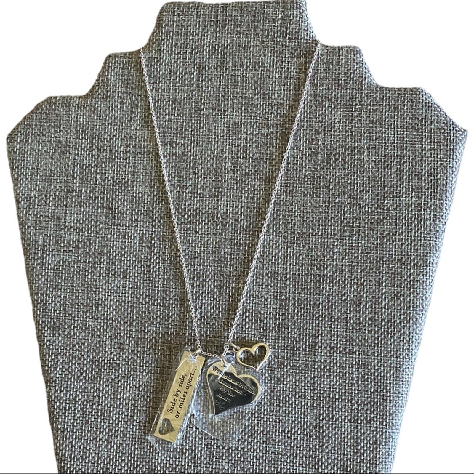Best Friend 3 Charm Heart Silver Necklace 22” NEW