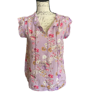 Buffalo Jacquard Purple Lavender Floral Top Size X-Small NEW