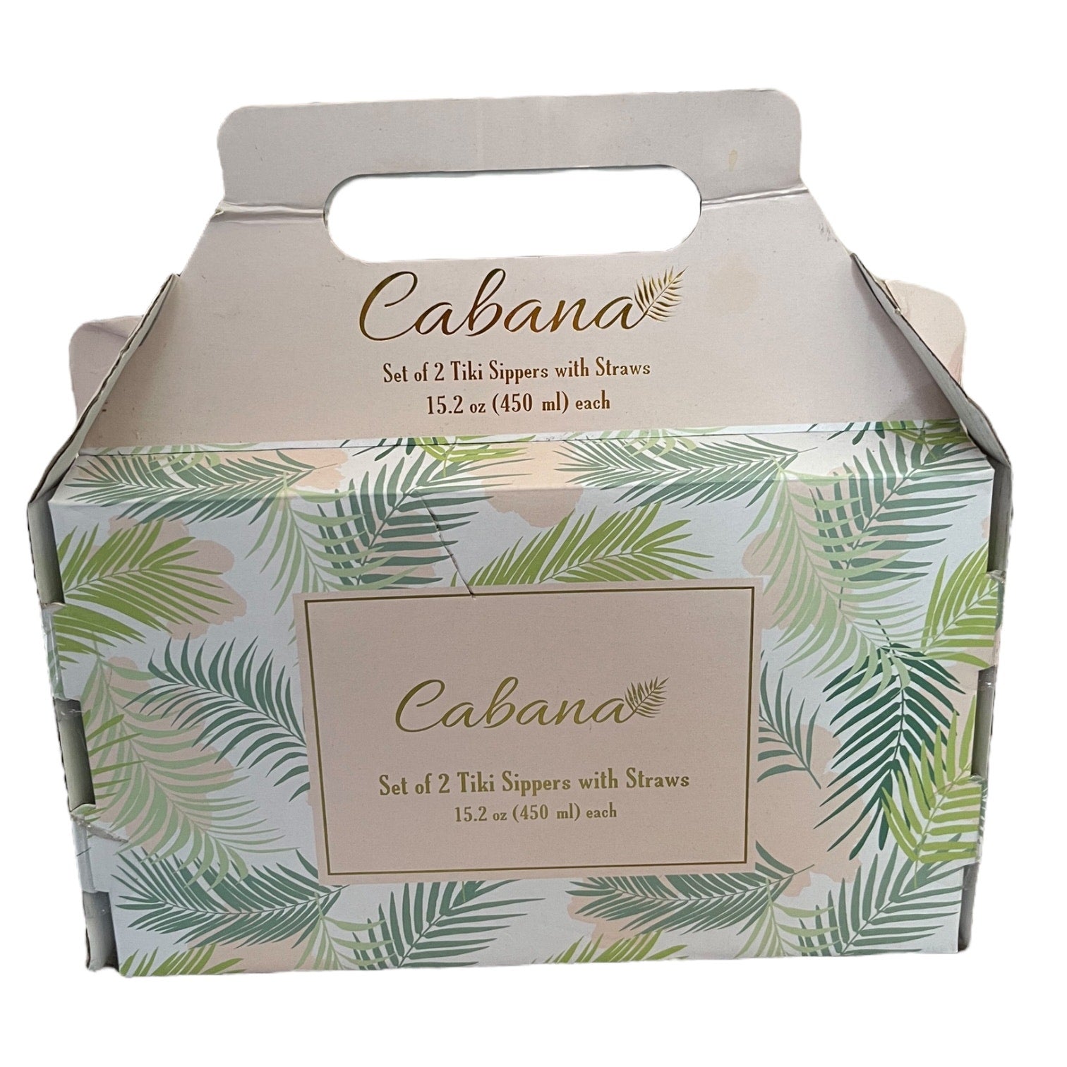 Cabana Pink Set Of 2 Tiki Sipper Cups With Straws NEW