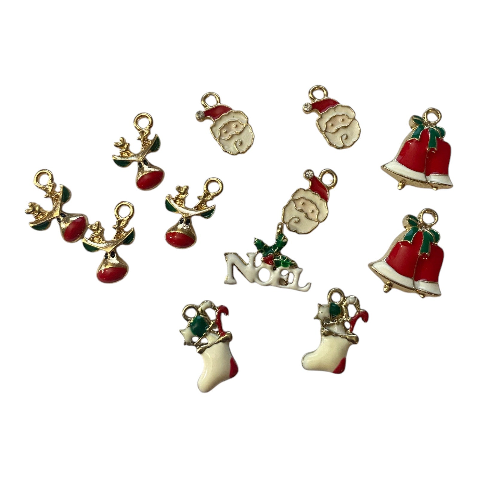 Christmas Stocking Santa Noel Reindeer Multicolor Set Of 12 Charms